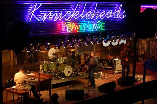 Originally a truck, school bus and motor home repair facility, the Knucklehead Garage stage is a versatile venue than can showcase solo artists or 16-piece bands. This largest indoor venue in Knucklehead has a very cool and funky vibe that can seat up to 450.